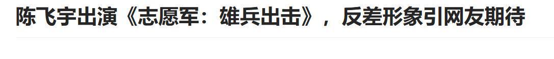 文本信源:大众网|陈飞宇出演《志愿军:雄兵出击》,反差形象引网友期待. 2023